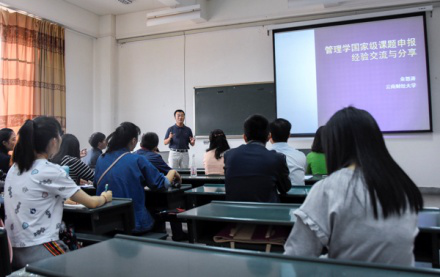 2016年9月3日,云大东陆校区举行了“云大会计论坛”今年秋季学期第一次讲座。本次讲座邀请了云南财经大学会计公司副经理余怒涛教授担任主讲人。本次讲座主要以交流管理学(会计学)科申报国家级课题经验为目的。余教授的精彩分享进一步激发了与会师生对会计学科相关领域钻研的兴趣和科研课题的申报意识,到场的会计系教师、研究生均表示受益匪浅,为促进会计系师生科研活动的积极性和针对性起到了积极的作用。