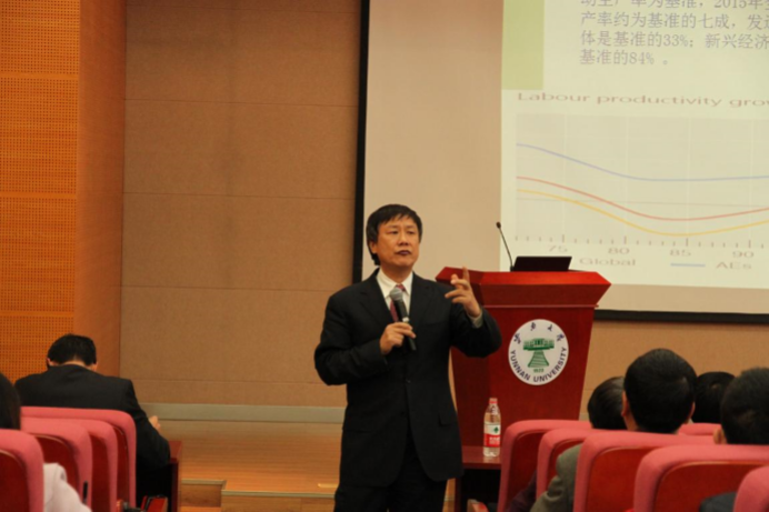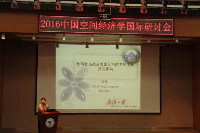 武汉大学经管院教授、中国世界经济学会副会长张彬做了《特朗普当选美国总统后美国经济政策变化的影响》的演讲。