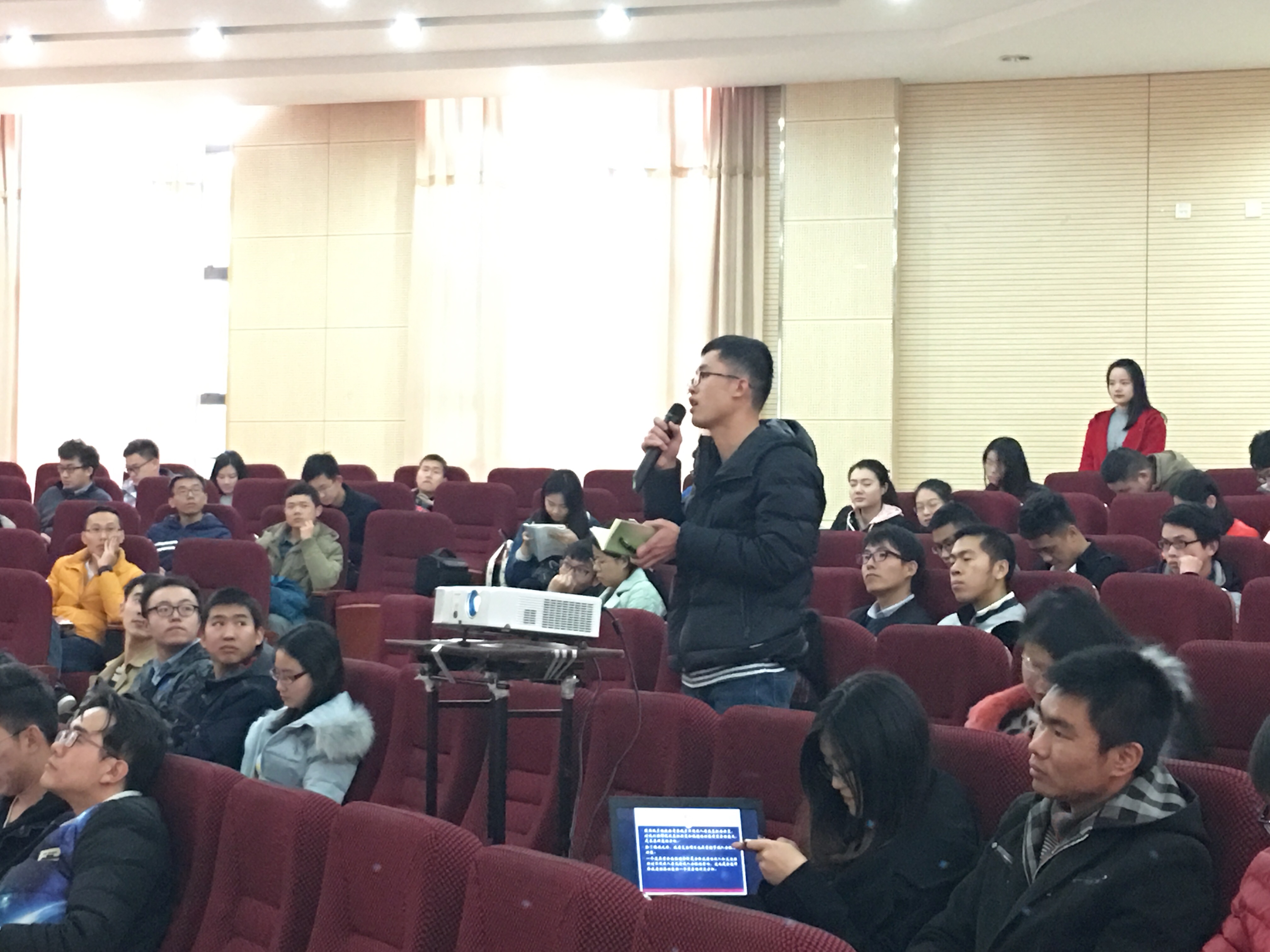 现场同学就所作报告提出自己的想法及问题,同学们的思想火花不断碰撞,整个报告氛围融洽热烈。