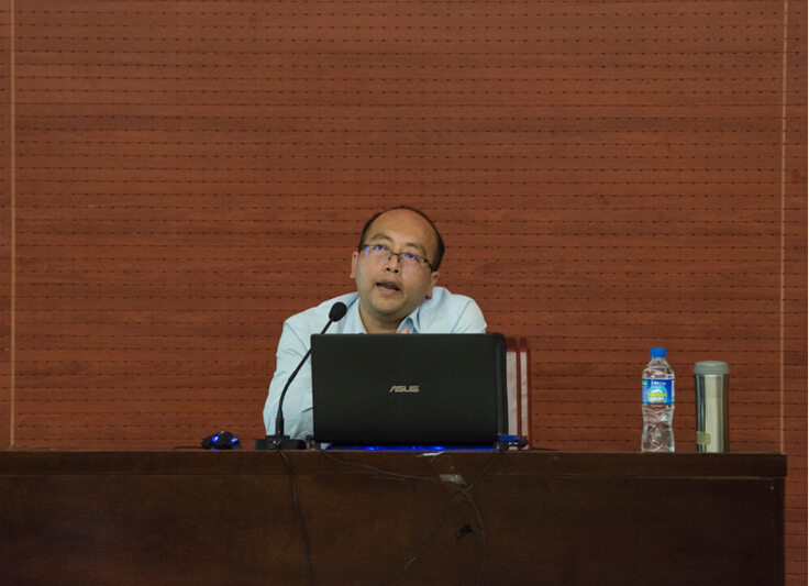 会议伊始,梁双陆老师向大家传达了上级党委文件精神并介绍基本情况,为之后“两学一做”专题报告蓄势铺垫。党课环节由马子红老师主讲,马老师在大会上围绕着“大、强、道”,“两强一堡”,“三个定位”等关键词深入地分析了云南省所面临的问题与机遇。在看到资源优势、区域优势和开放优势的同时,也注意到了发展不充分、不平衡、不协调、不可持续的劣势,引发了在场众多听众的思考。