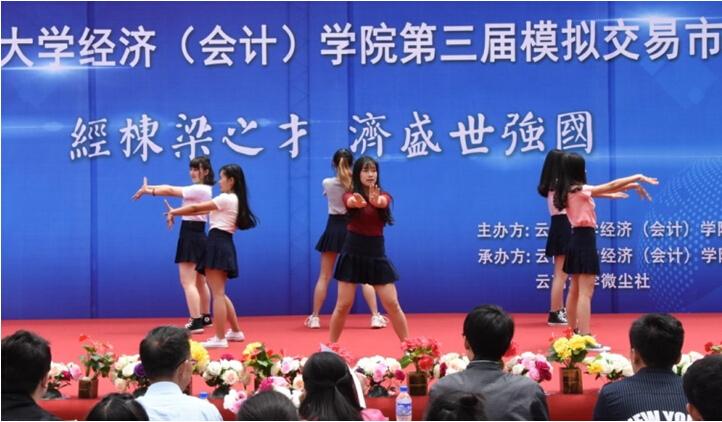 本次“模拟交易市场”以趣味为切入点,为我们带来了一场关于经济知识的头脑风暴。与此同时,激动人心的经济知识竞赛和辩论赛也将同步进行。文艺部青春洋溢的女孩们给大家带来了舞蹈表演,活跃了现场氛围为开幕式增添光彩,展现了公司学子风华正茂的蓬勃生机。在开幕式上,郭树华教授首先就本次开幕式致辞,表达了他对模拟市场交易的肯定和期许。随后,刘岚老师敲响铜锣宣布正式开幕。为便于同学们更好地参与到模拟市场当中,主席葛世豪同学向在场观众介绍整个活动流程和规则,现场观众表现出浓厚的兴趣.最终,开幕式在一场幽默诙谐的小品演绎中完美落幕。