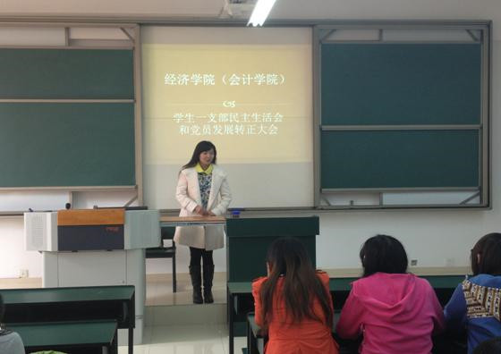 会议由一支部书记王守义老师主持,王守义老师首先简短介绍了发展对象加入党组织和预备党员转正的程序,具体分为以下三个流程进行:同学汇报自己情况,入党介绍人或者考察人汇报该同学情况,正式党员进行表决。