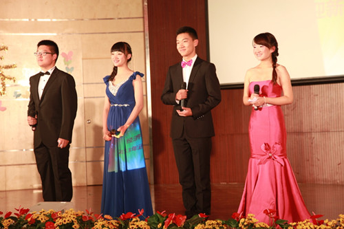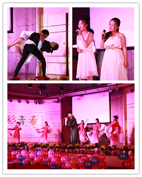而后研究生学长和学姐们也不甘示弱,一段火辣辣的《爵士舞》让同学们又再一次沸腾;然后让我们的心安静一下听了一首《谢谢你的温柔》;院外联部带来的《热带惊雷》将晚会推向了高潮;;热闹之余则也不免煽情,院团委员工会员工干部的诗朗诵《如果》则饱含学长学姐们的感触与期待。最后,晚会在一首首温暖感人、绽放青春光芒的歌曲串烧中结束,所有参加此次演出的成员及主持人同时登台合影,为本次晚会画上了完美的句点。