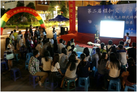 接下来的“班级展示”活动和晚上在民主草坪前举行的“财经微电影展播”均取得了同学们的一致好评,为模拟市场活动的顺利开展成功打响了头炮。
