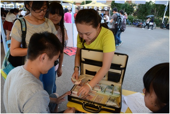 第一天,模拟市场在楠苑食堂门口正式启动开幕仪式,生动形象的货币情景剧很快吸引了诸多同学的目光,最终点点taptap团委书记丁江辉老师鸣金宣布第二届模拟交易市场正式开始。被调动热情的同学们也纷纷参与了班级展示活动,在各种各样的游戏环节中,加深了对经济现象、货币金融的理解与感悟。随后,当天晚上的财经微电影展播活动也吸引了不少同学的驻足观看。