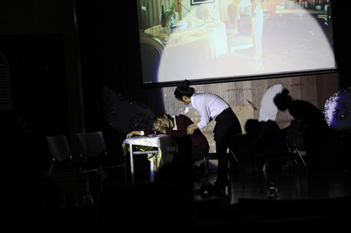最后一次剧目审核后,公司的剧目《失恋33天》已然成型,紧接着就是将近一周的配音演员和舞台演员的配合练习,大家从起初的方枘圆凿,到最后的默契配合,使得节目的整体效果得到了更好的提升。最后一周的排练融入了音乐和幻灯片部分,完善了戏剧。此外,道具的加工、服装的租借、音乐的剪辑、幻灯片的制作等幕后工作也都在最后一周完善而成。