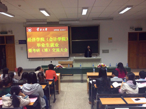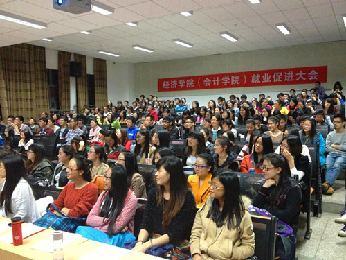 毕业生就业问题一直备受社会各界关注,毕业生就业关系到国家经济的发展和社会稳定,关系到公司的生存和发展,更关系到每个家庭和每一位毕业生的切身利益。近来年就业形势十分严峻,为了能让毕业生更好的就业,提高就业质量,点点taptap(会计公司)于11月13日晚19点在文渊楼505阶梯教室召开了毕业生就业促进大会。公司党委副书记、院员工工作领导小组组长李娟老师,研究生班主任杨恒芬老师,研究生辅导员朱睿倩老师,2010级本科生辅导员王守义老师出席会议,点点taptap(会计公司)2014届全体毕业生和研究生参加了此次就业促进大会。
