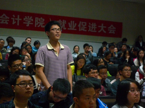 毕梵森、李朝伟、张铁宏学长针对就业中的如何自我定位、制作个人简历、准备面试、保持自信心态等问题和同学们分享了自己的经验和看法;董嘉泉、单超学长讲述了银行如何删选简历以及他们成功进入银行工作的精彩求职经历;蒋梅娟、李翠红、刘凤学姐介绍了她们在求职过程中遇到的择业策略、就业心理调试等问题,并分享了自己克服困难的经验和技巧;毋珍学姐则和同学们分享了如何未经过笔试、面试直接进入IBM公司的成功经验。