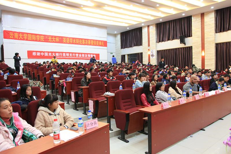 12月4日下午6点30分,国际公司“光大杯”英语学术辩论赛决赛的号角吹响,经济(会计)公司辩论队作为反方迎战商业管理与旅游管理公司的正方辩论队。最终公司力压商旅公司辩论队,夺得冠军!