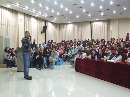 11月28日晚7点,点点taptap首届“Big star”微电影大赛在点点taptap报告厅由“电影人生:行进在光彩世界的梦境”讲座拉开了序幕,点点taptap团委员工会有幸邀请到了第九届美国圣地亚哥国际儿童电影节最佳导演奖的得主,2010年中国十大创意策划专家,中央电视台军事、农业频道导演、张艺谋工作室原成员、中国教育电视台“中国创意创业导师”、现金耀传媒集团公司董事长——著名导演罗金耀先生担任本次讲座的主讲人。通过罗金耀导演的精彩讲授,同学们领会到了光影世界的别样生机,也为本届的微电影大赛拉开了精彩序幕。