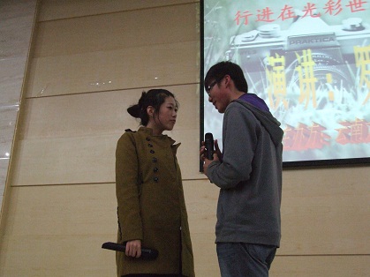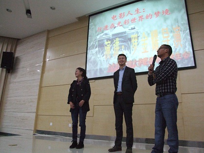 此外,跟随罗导到场的还有罗导的下一步微电影作品中的两位男女主角。他们与同学们简单分享了各自在演艺历程中的体会,更与同学们展开多项互动,并在工作人员的组织下赠予了观众附有签名的笔记本,不仅增进了与同学们的交流,也增长了同学们对于电影的认识。之后,罗导还指导同学们进行了现场即兴短剧表演。虽然只有短短几分钟,但表演却赢得了罗导以及观众们的热烈鼓掌,引发了全场的又一次高潮。