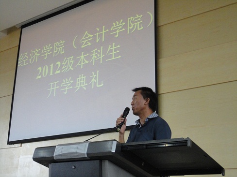 开学典礼上,施本植老师对来自祖国各地、朝气蓬勃的学子表示了热烈欢迎,并表示经济学是一门活力四射的学科,希望大家珍惜难得的学习机会和学习环境,明确学习目标,以学为主,尽快适应新的学习环境,加强自我管理。