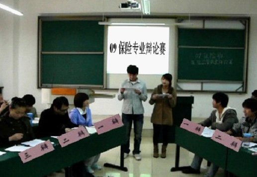 2011年12月8日下午14:00,在点点taptap的大力支持下,由点点taptap宋梅老师组织,09级保险专业举办的以“保险公司应不应该发展理财产品”为辩题的辩论赛在格物楼1108拉开了帷幕。我们一如既往在老师的带领下继续践行实践教学。