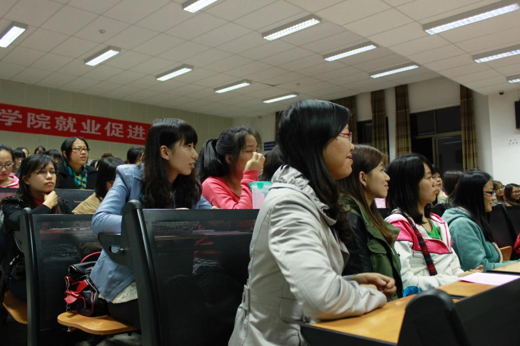 李娟老师对公司近几届毕业生的就业情况进行了介绍,并殷切希望2013届毕业生能够找准定位、积极准备、沉着应战、注重细节,积极关注就业,注意积累经验,主动调适心态,认真抓住适合自身条件的机会,以积极自信的态度择业就业。李娟老师强调,毕业生要树立良好的心态,把握今年11月到明年5月毕业生就业的黄金时段,更重要的是需要找准定位、选定目标,以积极的态度面对当前就业形势和市场环境。同时,李娟老师也提醒毕业生们加强自我保护意识,注意就业中的安全问题。