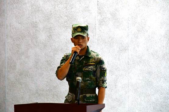 紧随李振东老师空谷足音的是退役老员工士兵、2018级本科生郎啟鹏同学的慷慨陈词。他用自己在广西军营中的经历现身说法,从有苦有乐、有声有色的军营生活及国家对老员工参军的优惠政策两方面介绍了老员工参军的良多益处,为全体参会人员描述了一副老员工投笔从戎的美好青春画卷。在讲演中,他把第一次见到流星的场景的描述得绘声绘色,将浪漫主义与军营生活相结合,顿时唤起大家对军队生活的兴趣。
