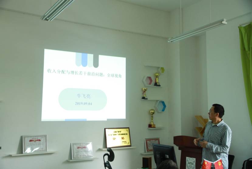 牛飞亮教授首先就以全球热点话题“社会不平等现象、国民贫富差距、收入差距导致的财富不平等”为铺垫,并辅以法国及中国目前的收入分配情况为例,展开了对收入分配的方法论、经济全球化与收入分配的联系、经济增长与收入分配的影响机制以及在研究收入分配问题时存在的争议与存在原因等方面的详细分析。
