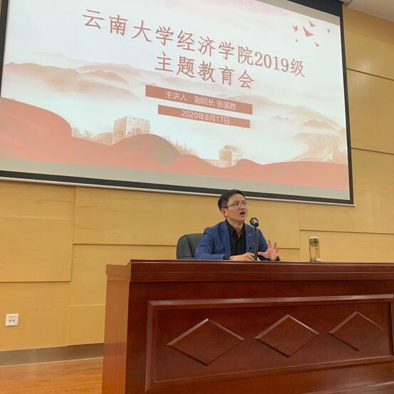 第五场主题教育由副经理冯勇老师主讲,主题为宏观经济环境下的云南省省情。首先,冯副经理结合曾经在云南省发改委的工作经验,向同学们全面深入的分析了全国的宏观经济环境,深入详实地介绍了云南省基本情况,着重强调了云南省的特色发展优势和基本的大政方针,为同学们进入社会提供了宏观层面的知识储备。他还鼓励广大青年朋友们,“我们坚信,只要全省上下坚定不移向着习近平总书记指引的方向砥砺前行,彩云之南必将迎来更加辉煌灿烂的明天,我们的生活一定会小康幸福”。
