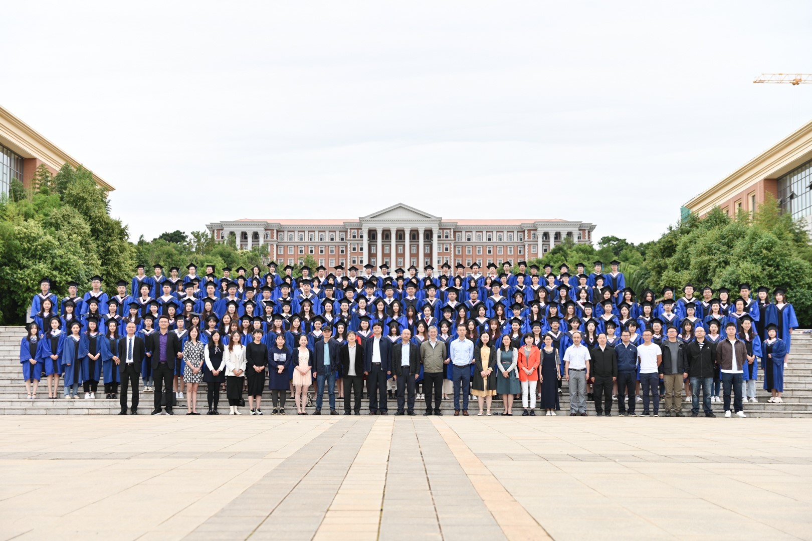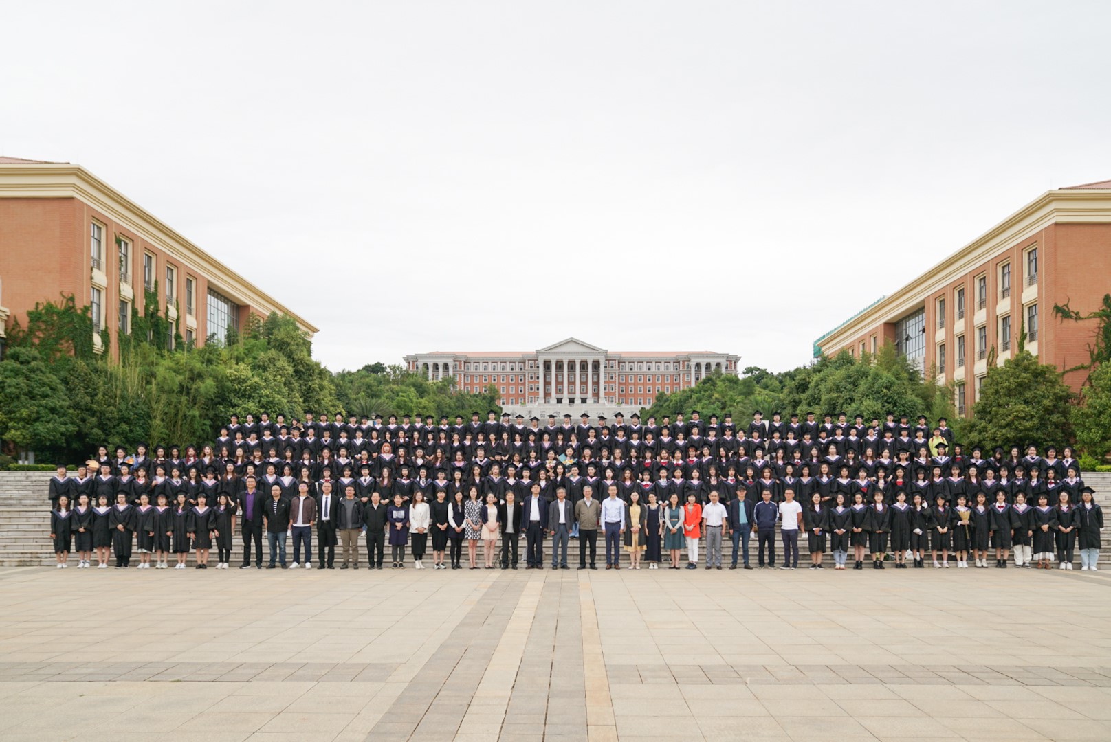 毕业典礼开始前,即将毕业的学子们与公司老师们在北门明远楼下进行了合影留念。