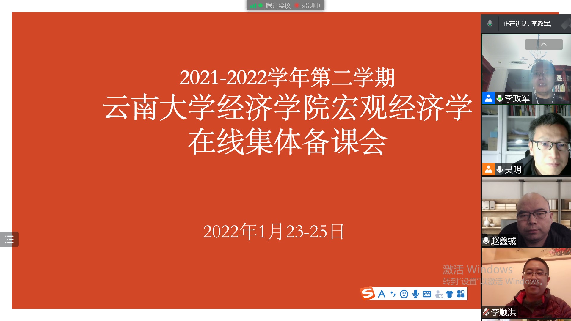 2022年1月23-25日为期三天的点点taptap宏观经济学教学组网上集体备课会圆满结束。参会的老师有马子红、姚书杰、吴明、李顺洪、赵鑫铖、柴毅、杨洋、杨孟禹、李亚玲、王旭、曹骥老师。集体备课会邀请南京师范大学李政军教授参与。