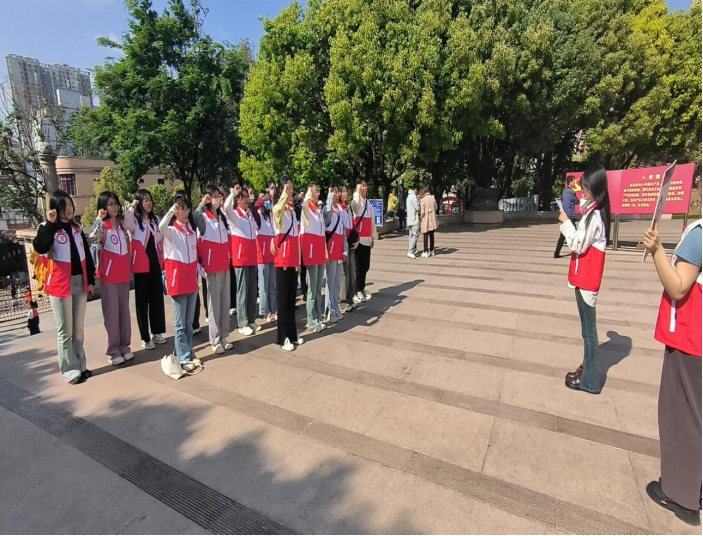 行程万里,不忘初心;信念如磐,一脉相承。在崔书宁同学的带领下,大家怀着饱满的热情重温入团誓词。朗朗清声,铮铮誓词,志愿者们以饱满的精神和昂扬的姿态在纪念碑前留下了自己的声音。