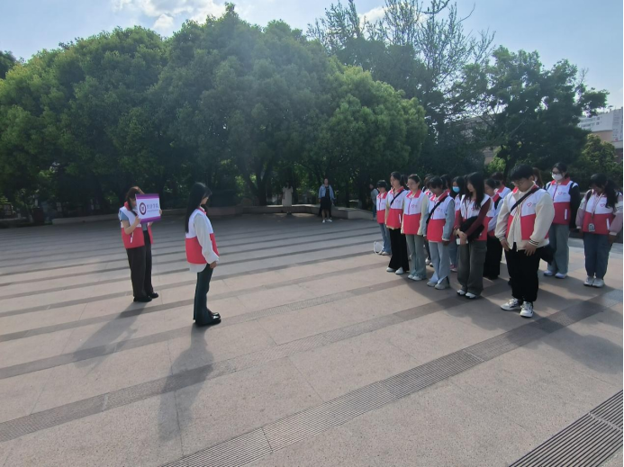 无限哀思无限情,清明时节祭英雄。全体志愿者为革命先烈默哀一分钟。在这寂静无声的一分钟里,志愿者们的心灵与历史同频,感受着先烈们的伟大与不朽。