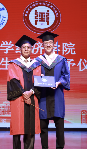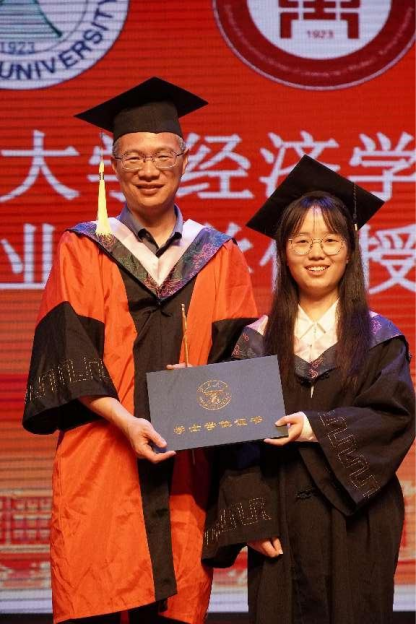 最后,各位毕业生依次上台,由学位委员会经济学分委员会委员为其授予学位、进行拨穗仪式并合影留念。师生互道送别情,在毕业生们与老师的温馨互动中,2024届毕业典礼暨学位授予仪式也落下了帷幕。