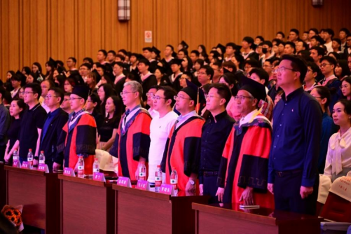 典礼伊始,主持人牛文斌书记带领在场的师生、家长全体起立,奏唱国歌,嘹亮的歌声响彻会堂,毕业生们满怀感激,眼中满是对美好未来的憧憬和期待。