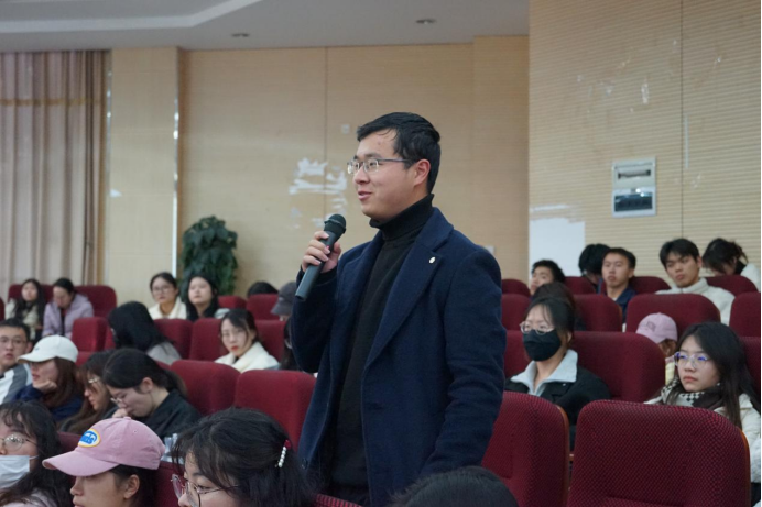 在报告第二阶段,出席报告会的王则柯教授简要回顾了自己的求学治学历程和心得,阐释了虚心求学、严谨治学的精神追求和时代价值,强调了在研究过程中要坚持问题意识为先,逻辑分析为本,力求模型方法的简洁和易懂。王则柯教授高度肯定了同学们的学习热情和精神风貌,鼓励同学们开拓视野,积极拓宽自己的知识面,努力提升自身学术素养。王则柯教授的发言将报告会推向了高潮,参会师生都备受启发和鼓舞。